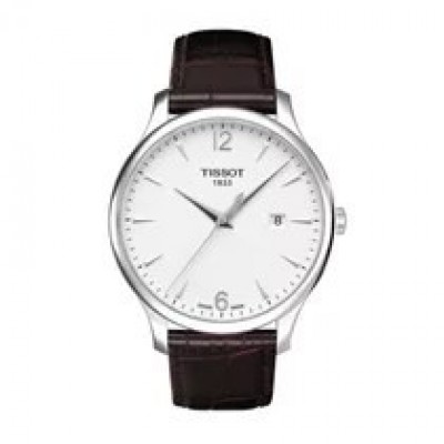 Relojes suizos Tissot, reloj clásico de cuarzo para hombre con correa de piel T063.610.16.037.00 (caja plateada, esfera blanca, correa marrón)