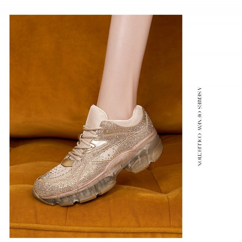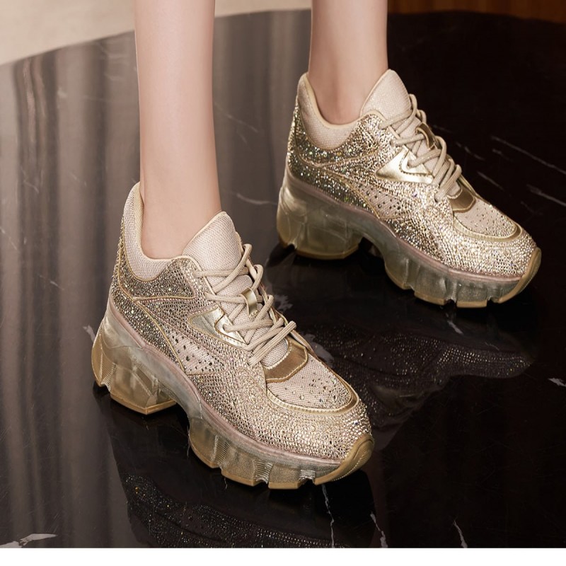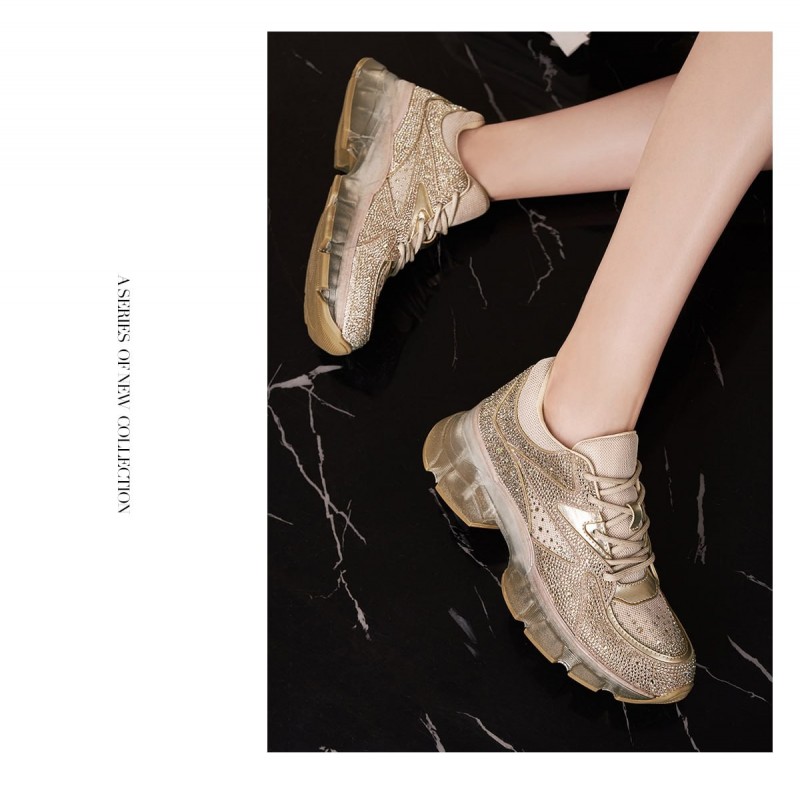 Xunsu 2023 Primavera Nuevos Zapatos Deportivos de Suela Gruesa con Suela de Diamante para Mujer TA43162-70-Dorado (2 Piezas)